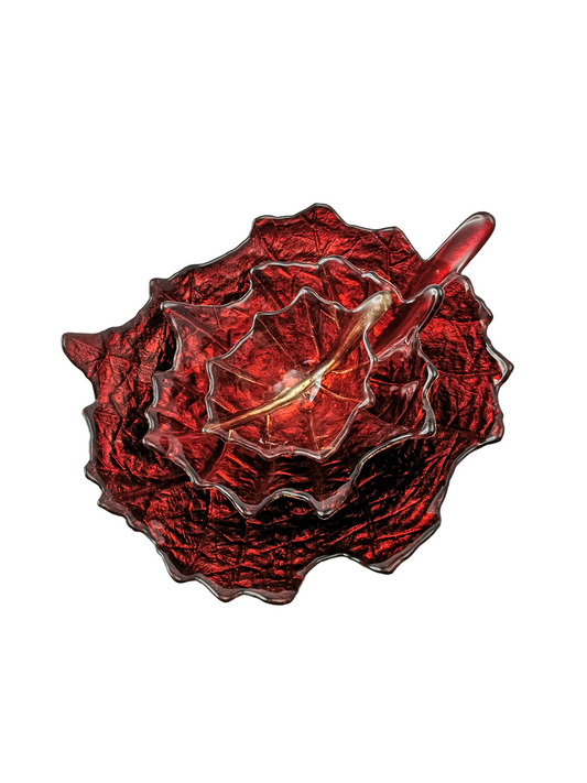 Vintage Ruby Red Glass Leaf Shape Plate/ Tray/ Dish - Medium